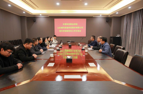11月25日,我校党委委员、副校长焦新伟一行到山东威玛装备科技有限公司,就机械制造专业现代学徒制项目建设及学生在企实习进行调研,落实下一步校企合作、现代学徒制项目培养具体事宜,山东威玛装备科技有限公司党支部书记孙哲,人力资源部总经理王其花进行了热情的欢迎和接待。