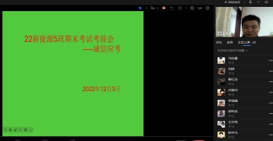 为了进一步加强同学们的考风考纪,构建诚信校园,保证期末考试的顺利进行,倡导同学们“端正考风、严肃考纪、文明答题、诚信应考”。2022年12月,AWC万象城娱乐21级辅导员以及22级班主任陆续开展线上班会,以正考风考纪。