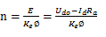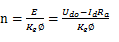 Udo 为电源空载电压;Ud为电动机电枢电压;E为电枢电动势;R为电枢回路总电阻,R=Rn+Ra+R1; Rn 为直流电源内阻;Ra 为电枢内阻;R1为线路或外接电阻;n 转速,单位r/min;Φ为励磁磁通;Ce为电动机的电动势转速比,Ce=KeΦ;Ke为电动机结构决定的电动势系数。