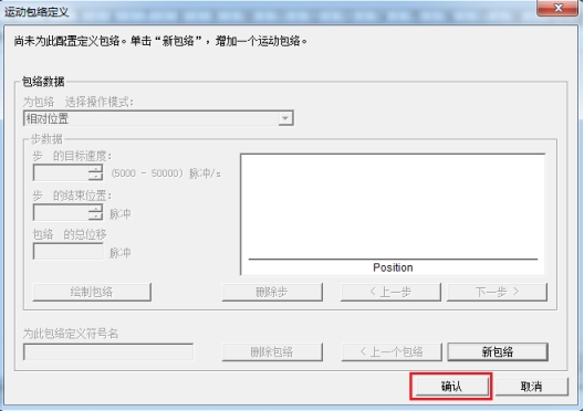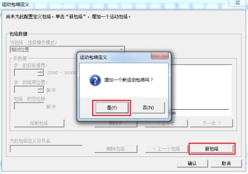 用户如需配置包络,则点击 新包络按钮,出现 运动包络定义界面,点击 “Yes” 增加一个新包络运动。如下图 7 所示: