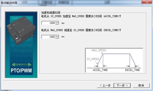电机加速和减速时间由反复试验决定。您应当在开始时用位置控制向导输入一个较大的数值。当测试您的应用时,请根据要求调整有关数值。请通过逐渐减少时间直至电机开始停顿的方法,优化该应用的设置。