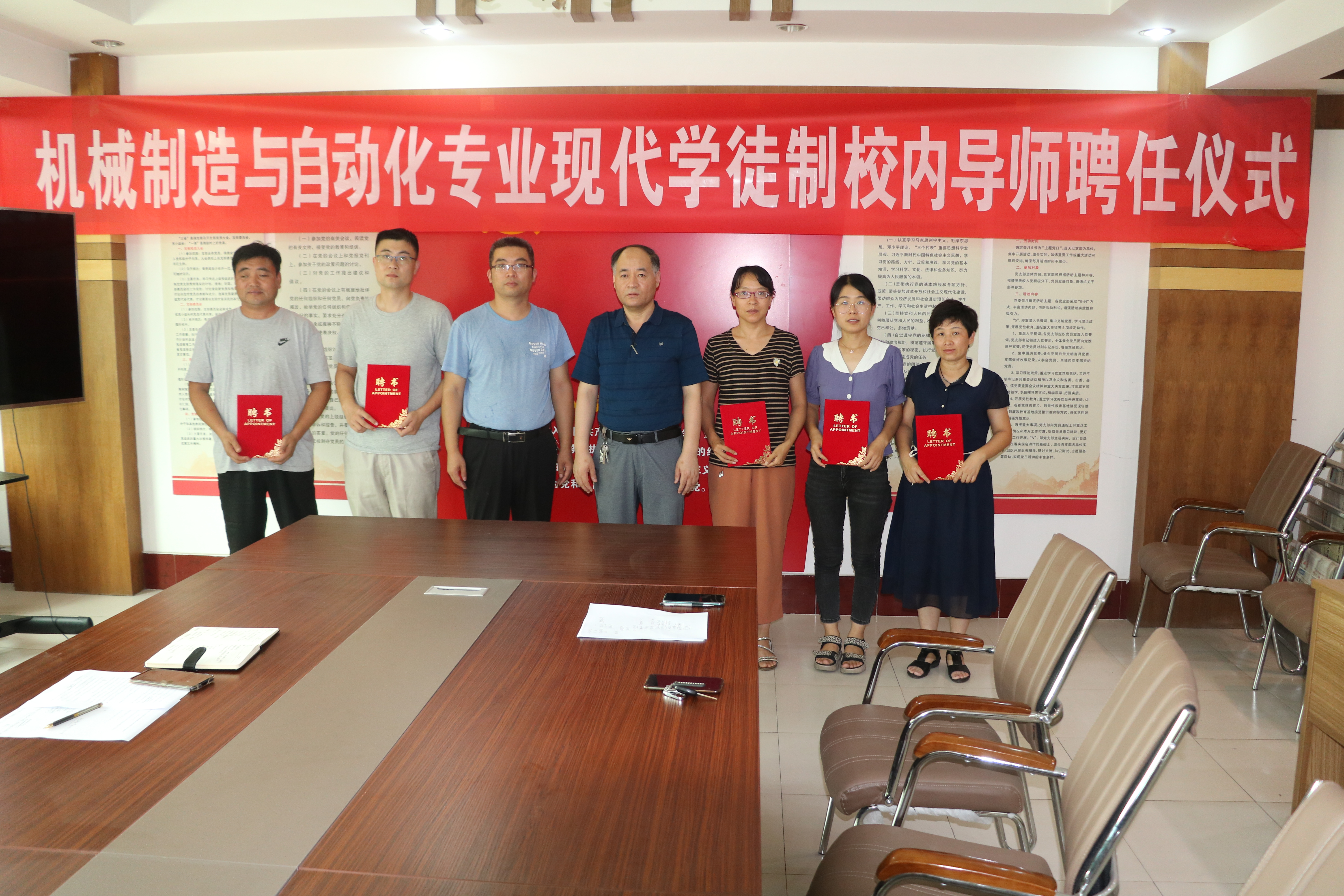 2020年7月15日,机电工程学院在学校二楼活动室举行了机械制造与自动化专业现代学徒制校内导师聘任仪式。