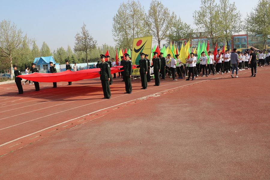 同学们伴着音乐的节奏,迈着铿锵有力的步伐,护旗手擎着鲜艳的五星红旗走向主席台