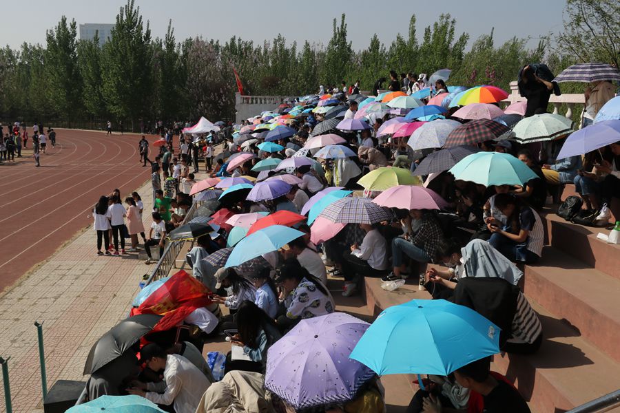 即使烈日暴晒, 即使酷暑难耐, 万象城同学们仍然坚持在看台上, 他们的加油 声震耳欲聋, 响彻云霄。 他们的呐喊伴随着隆隆的鼓声, 回响在风雨操场的上空。