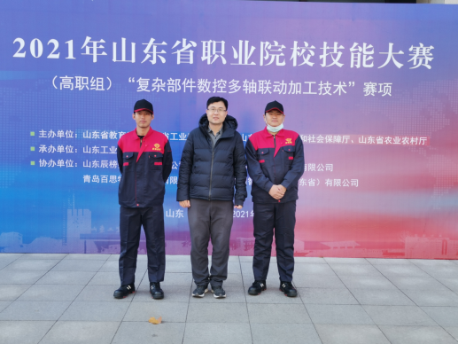 11月20日至22日,2021年山东省职业院校技能大赛(高职组)“复杂部件数控多轴联动加工技术赛项”赛项在山东工业职业学院举行。我校智能装备学院教师卜繁永指导的学生栾超、李金鹏荣获团体组三等奖。