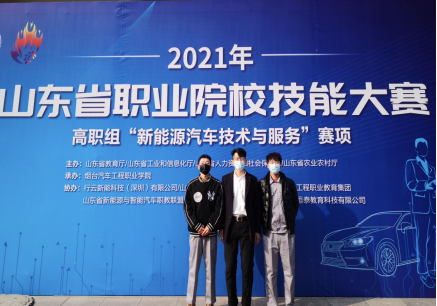 12月11日,AWC万象城娱乐教师田振龙、杨素芳指导的参赛学生宫诚、赵冬晨在2021年山东省职业院校技能大赛高职组“新能源汽车技术与服务”赛项中荣获三等奖。