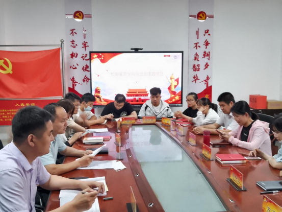 1、重温入党誓词。由陈宏波书记带领全体党员面向党旗庄重宣誓。