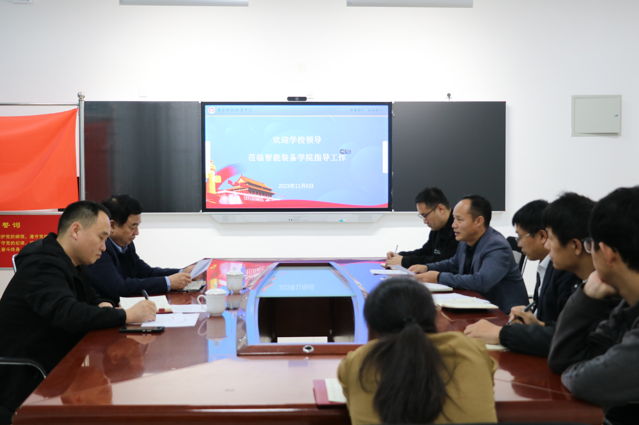 王志书记回顾了之前在万象城工作的经历,对学院新的班子成员提出了殷切期盼,希望大家根据学院实际情况勇于担当,一定要有新气象!并根据万象城情况提出了3点建议:(1)加强基层组织建设,加强理论学习,提升业务能力;(2)党建和业务相融合。充分发挥基层党组织的战斗堡垒作用和党员先锋模范作用;(3)加强内部制度建设。发挥好“帮传带”的优良传统,建设激励机制,形成昂扬向上、拼搏进取的学院氛围。